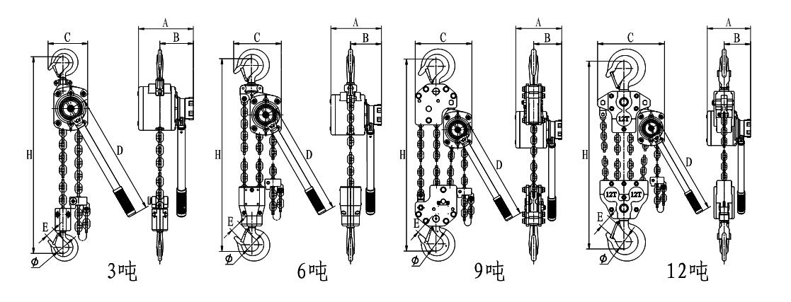 起重鏈條圓鋼直徑 | mm | 8 | 8 | 8 | 8 |