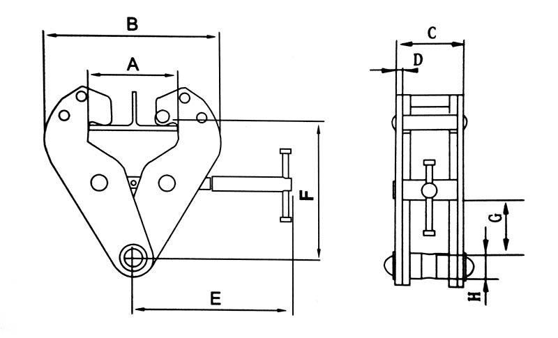 * Robust all-steel construction with safety operation. Compact size with light,easy to install with minimum headroom,super-quick adjustment to any girder width in range.