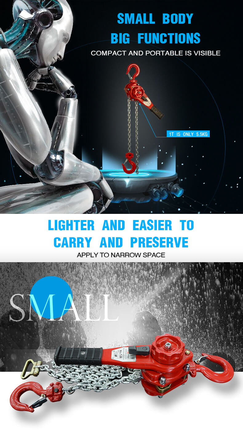 型號 | 額定載荷(t) | 起升高度(m) | 試驗載荷(t) | 手板力 kg(n)(ibs) | 起重鏈條 | 尺寸規格(mm) | 重量(kg) | |||||||||